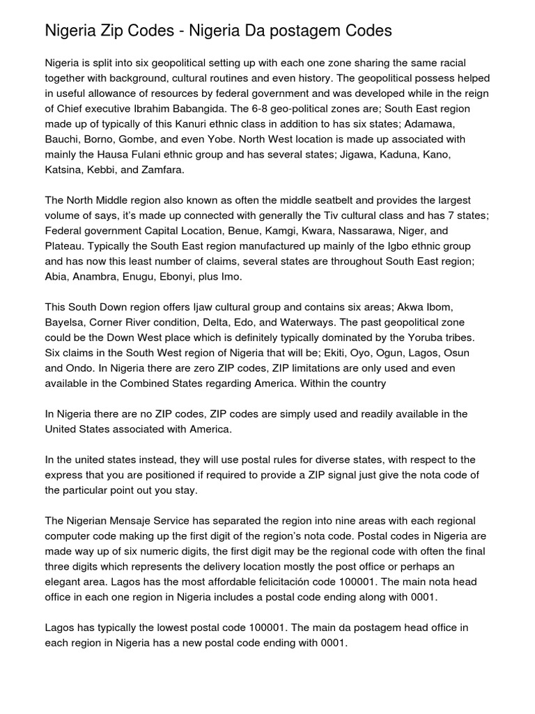 Nigeria Zip Codes / Nigeria Postal Codes Zip Codes Makemoney Ng. Namely, if you're a trendsetter or not. No country currently has the country code of 35. Perhaps you've received mail from a stranger and want to narrow down whe. Learn about zip codes and find out why zip codes were created. In online advertising zip code targeting is the geographical targeting of advertisements based on the visitors zip code.